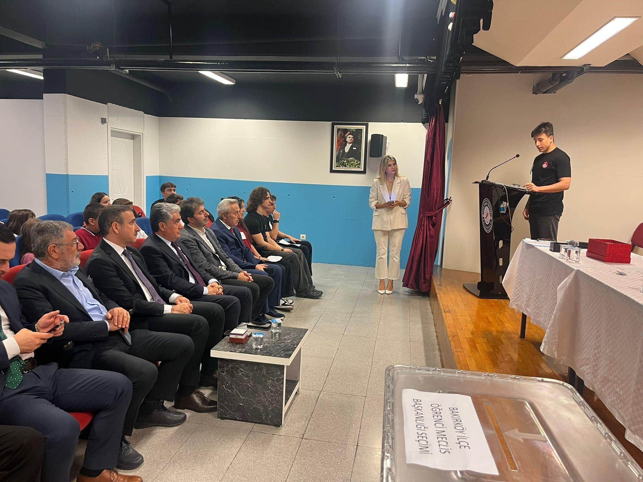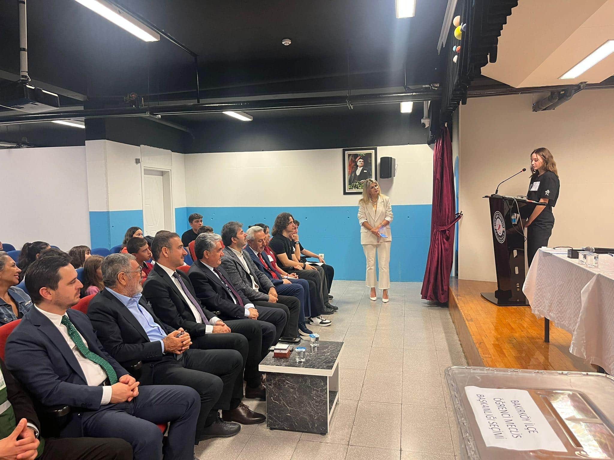 Valiliğimiz uhdesinde yürütülen İstanbul Öğrenci Meclisleri Projesi kapsamında, Bakırköy İlçe Öğrenci Meclis Başkanlığı seçimi gerçekleştirildi. Seçimimize; Kaymakamımız Recai Karal, Bakırköy Belediye Başkan Yardımcımız Uğur Dündar, İlçe Milli Eğitim Müdürümüz Dr. Kürşat Arzuoğlu, STK Başkanları,Sendika Başkanları ve meclis üyelerimiz katılım sağladı. Katılımlarıyla bizlere onur veren tüm misafirlerimize teşekkür ederiz. İlçe Öğrenci Meclisi İlkokul Temsilcisi olarak seçilen Halil Vedat Fıratlı İlkokulu öğrencisi Defne Diren Dağ'ı, İlçe Öğrenci Meclisi Ortaokul Temsilcisi olarak seçilen Halil Bedii Yönetken Ortaokulu öğrencisi Şevval Çelik'i, İlçe Öğrenci Meclisi Başkanı olarak seçilen Hasan Polatkan Anadolu Lisesi öğrencisi Mehmet Kerem Goral'ı tebrik ediyor, yeni dönemin öğrencilerimiz için hayırlı olmasını diliyoruz.